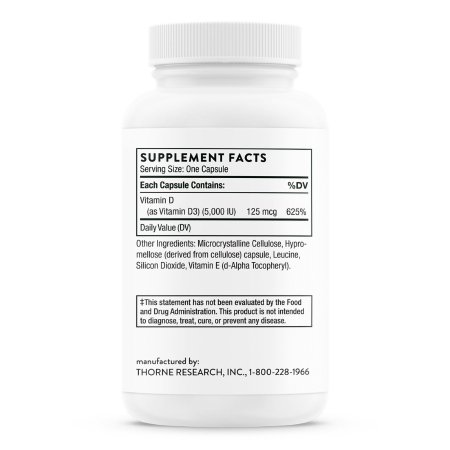 Vitamin Supplement THORNE® D-5 000 Vitamin D3 125 mcg Strength Capsule 60 per Bottle