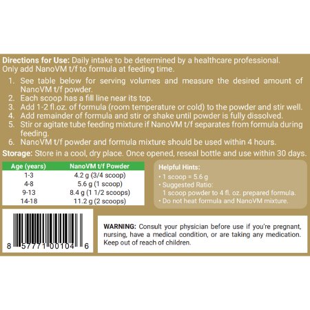 Pediatric Tube Feeding Formula NanoVM® tf Unflavored 275 Gram Jar Powder Vitamins / Minerals Food Allergies