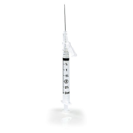 Safety Hypodermic Syringe with Needle McKesson Prevent® SG 3 mL 1-1/2 Inch 22 Gauge Sliding Safety Needle Regular Wall