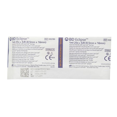 SYRINGE/NDL ECLIPSE SAFETY 1CC THIN WALL 25GX5/8″ (50/BX)