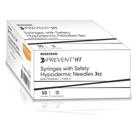 Safety Hypodermic Syringe with Needle McKesson Prevent® HT 3 mL 5/8 Inch 25 Gauge Hinged Safety Needle Thin Wall