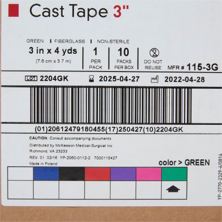 Cast Tape McKesson 3 Inch X 12 Foot Fiberglass Green