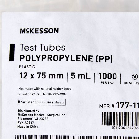 McKesson Test Tube Plain 5 mL Without Closure Polypropylene Tube