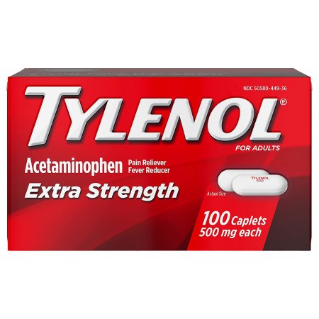 Pain Relief Tylenol® 500 mg Strength Acetaminophen Caplet 100 per Bottle