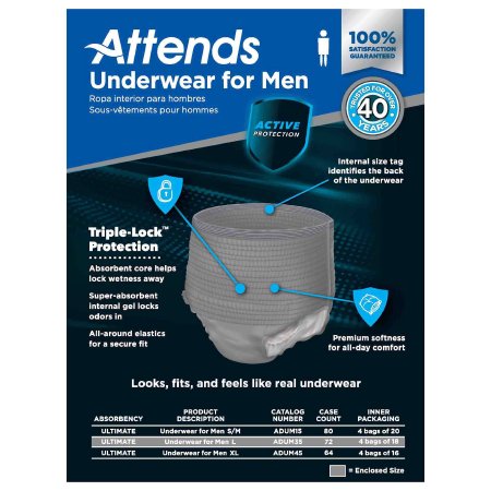 UNDERWEAR ATTENDS ULT MALE LG/XLG (18/BG 4BG/CS)