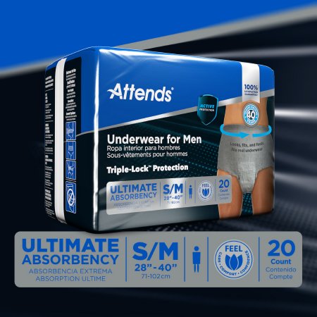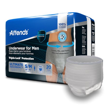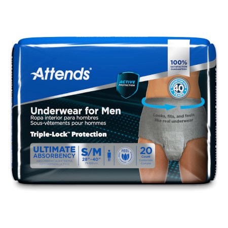 Male Adult Absorbent Underwear Attends® For Men Pull On with Tear Away Seams Small / Medium Disposable Heavy Absorbency