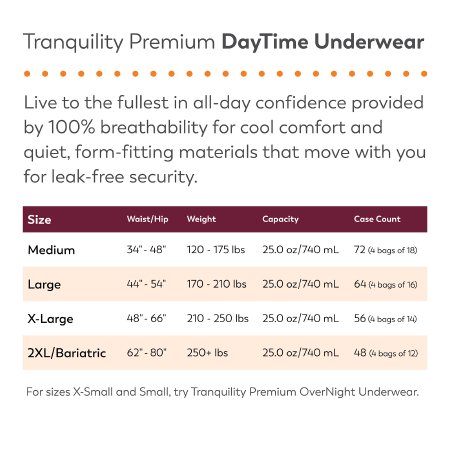 Unisex Adult Absorbent Underwear Tranquility® Premium DayTime™ Pull On with Tear Away Seams 2X-Large Disposable Heavy Absorbency