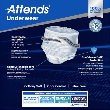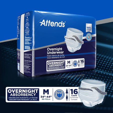 Unisex Adult Absorbent Underwear Attends® Overnight Pull On with Tear Away Seams Medium Disposable Heavy Absorbency