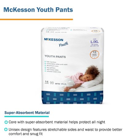 Unisex Youth Absorbent Underwear McKesson Pull On with Tear Away Seams Large / X-Large Disposable Heavy Absorbency