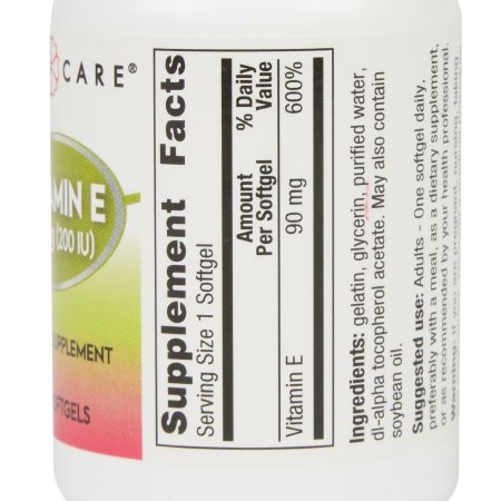 Vitamin Supplement Geri-Care® Vitamin E 200 IU Strength Softgel 100 per Bottle