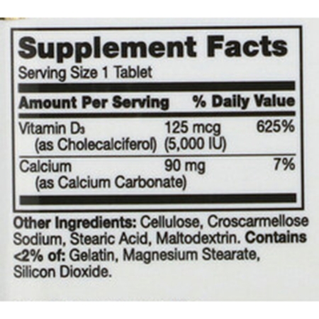 Vitamin Supplement 21st Century® Vitamin D / Calcium 5 000 IU Strength Tablet 110 per Bottle
