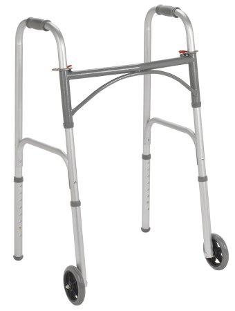 Dual Release Folding Walker with Wheels Adjustable Height driveâ„¢ Steel Frame 350 lbs. Weight Capacity 32 to 39 Inch Height