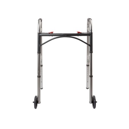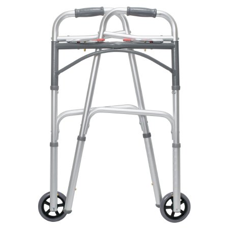 Dual Release Folding Walker with Wheels Adjustable Height McKesson Aluminum Frame 350 lbs. Weight Capacity 32 to 39 Inch Height