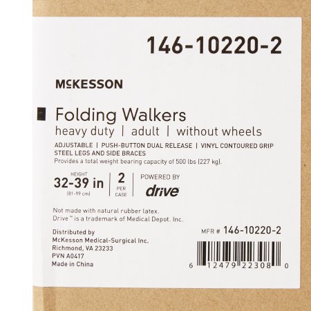 Bariatric Dual Release Folding Walker Adjustable Height McKesson Steel Frame 500 lbs. Weight Capacity 32-1/2 to 39 Inch Height
