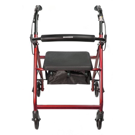 4 Wheel Rollator McKesson Red Adjustable Height / Folding Aluminum Frame