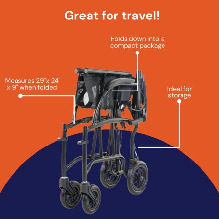 Lightweight Wheelchair Feather Full Length Arm Swing-Away Footrest Gray / Orange Upholstery 18 Inch Seat Width Adult 250 lbs. Weight Capacity
