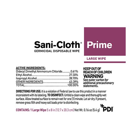 Sani-Cloth® Prime Surface Disinfectant Cleaner Premoistened Germicidal Manual Pull Wipe 50 Count Individual Packet Alcohol Scent NonSterile