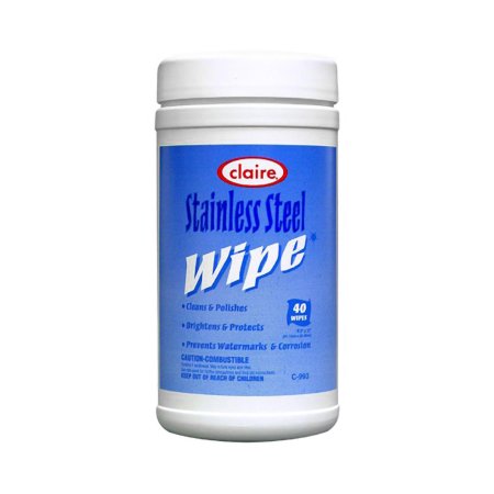 Claire® Stainless Steel Cleaner Premoistened Manual Pull Wipe 40 Count Canister Citrus Scent NonSterile