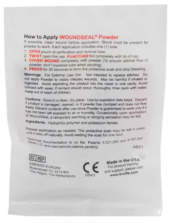 WOUND SEAL BLEEDING CNTRL BIOLIFE QR PDR (2/PK)