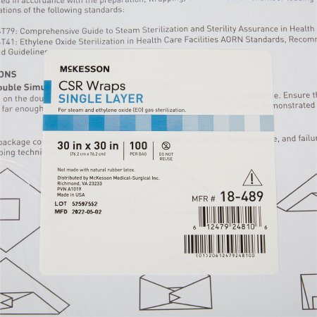 McKesson Sterilization Wrap Blue 30 X 30 Inch Single Layer Cellulose Steam / EO Gas