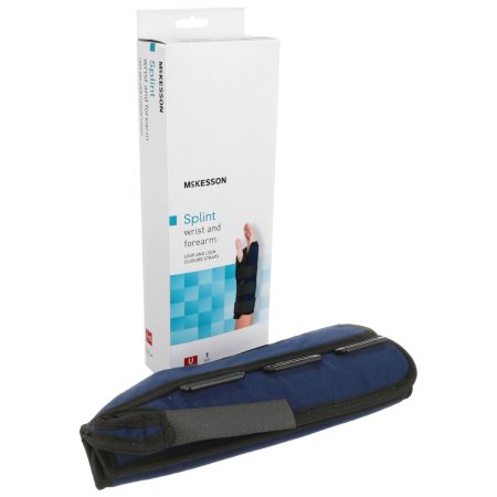 Wrist / Forearm Brace McKesson Aluminum / Nylon / Foam / Flannelette Left Hand Black / Blue One Size Fits Most
